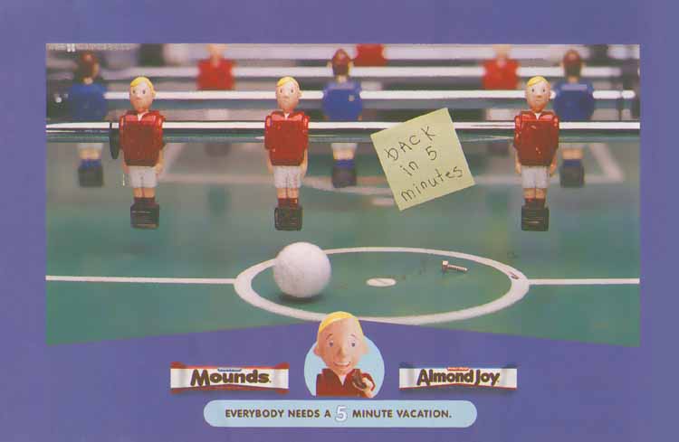 - Hershey's advertisement for Mounds and Almond Joy (44K) I found this in People Weekly magazine in the August 21, 2000 issue. I'm sure it's elsewhere as well.