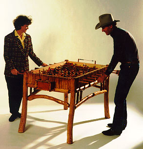 - Tree Log Foosball Table in action with Cowboy (38K): This is a photo (wonderfully lit) of designer Siggins as cowboy playing foosball with his wife. See above for more info.