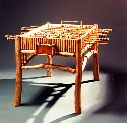 - Tree Log Foosball Table (29K) The most beautiful foosball table I have ever seen. This wonderful piece was winner of the Western Design Conference in Cody, Wyoming in 1997. For more information, call (888) 685-0574. The Designer is Ken Siggins of Triangle Z Ranch Furniture of Cody, Wyoming (PO Box 995 Cody, WY 82414; (307) 587-3901). Both images were found at the magazine Wyoming Companion, a journal of the West & Western Travel, in their section on "western handcrafts & products." By the way, no, it's not really bamboo, but that's what it evokes in style to me. It's actually Douglas fir pieces, appropriate for the Western theme. From looking at his web page, I'm pretty sure you can buy one if you call Mr. Siggins.