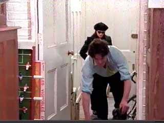 - Notting Hill Hallway Travel bookstore owner Hugh Grant invites mega star Julia Roberts into his apartment as he struggles to clean up while entering. See this video clip too.