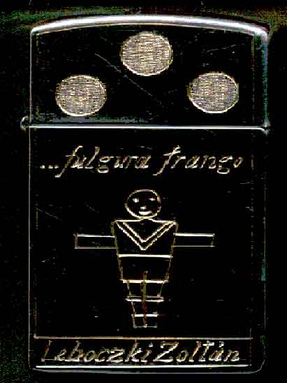 Zoltan Lehoczki's Foosball-engraved Zippo lighter (19K). He's from Hungary, and sent me this photo.